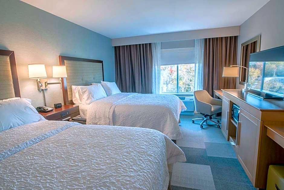 Let's talk about the comfortable and stylish room options at the Hampton Inn. If you're traveling with family or a group of friends, you can choose the Queen Room with Two Queen Beds. This spacious room accommodates up to four adults and three children, ensuring everyone has a cozy place to sleep. For those seeking a suite experience, the King Studio Suite offers ample space and can comfortably accommodate three adults and two children. The rooms at the Hampton Inn are non-smoking, ensuring a fresh and pleasant atmosphere throughout your stay.